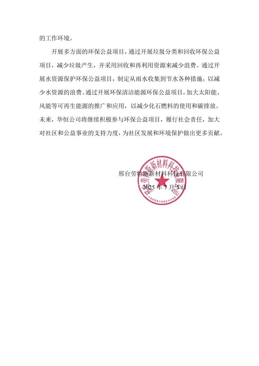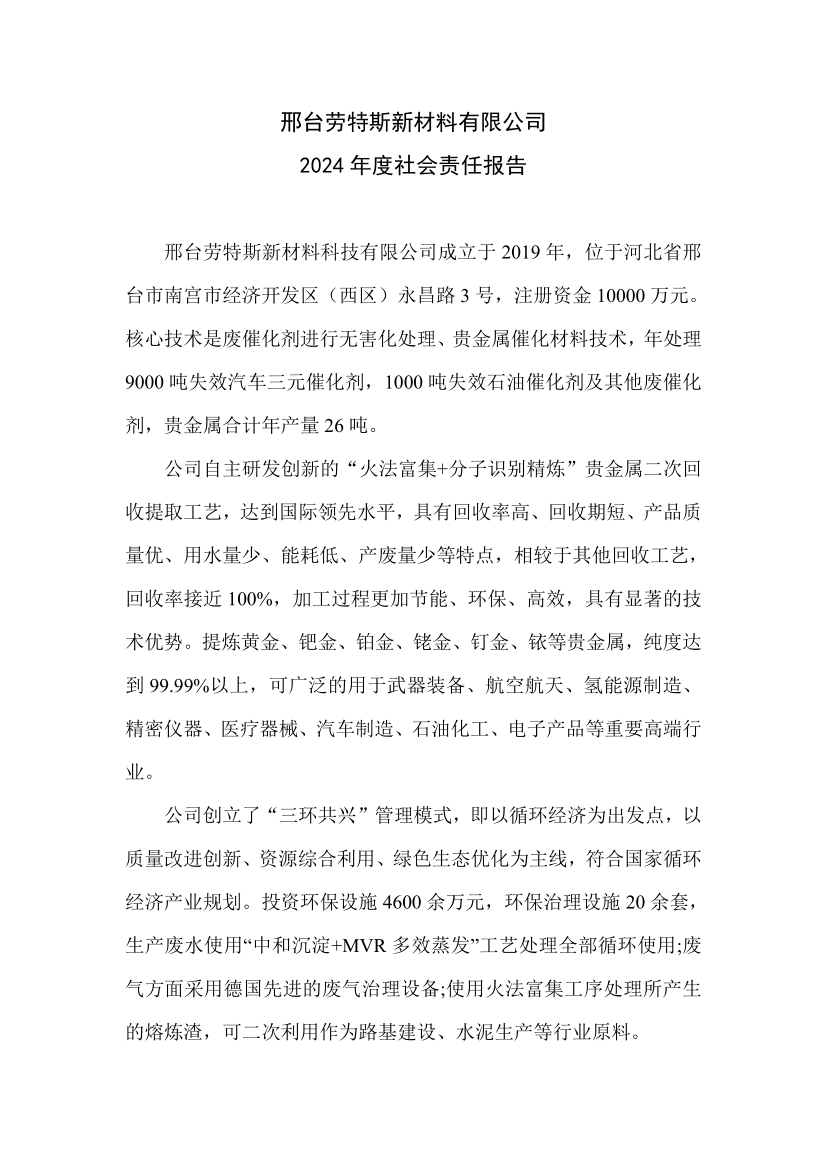 邢台劳特斯新材料有限公司 2024 年度社会责任报告